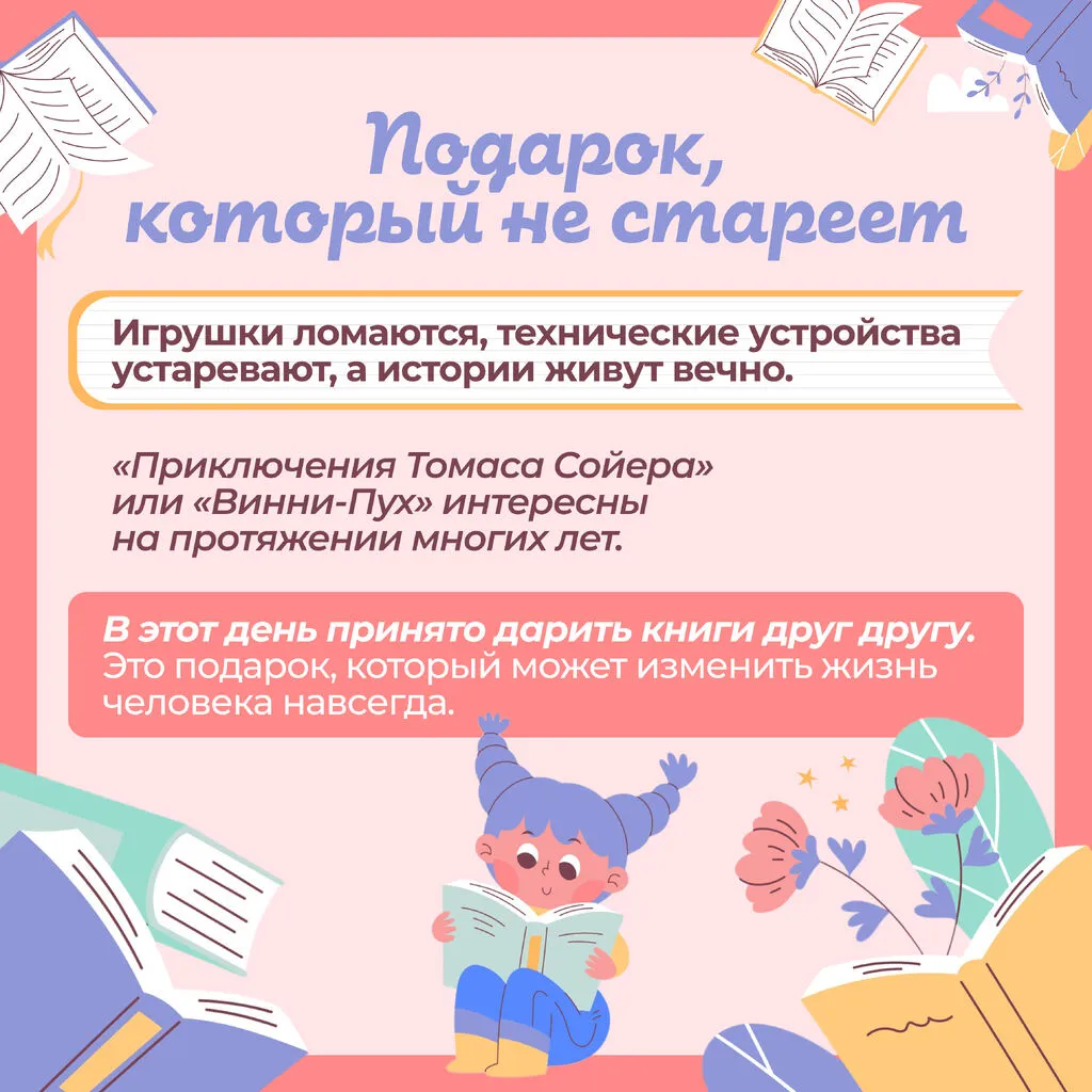Благодаря чтению ребёнок развивает мышление, воображение и грамотную речь. Детская книга не только формирует личность каждого ребёнка, но и участвует в создании нравственных и интеллектуальных ценностей целых поколений.